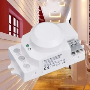 Nếu như các bạn chưa biết thì cảm biến radar hay còn gọi là cảm biến vi sóng, hoạt động ở băng tần 5.8Ghz với hiệu ứng Doppler phát hiện mọi chuyển động 360° không có điểm chết. Cảm biến này rất nhạy, có thể phát hiện chuyển động rất nhỏ trong vòng bán kính 8m và có thể xuyên qua tường, gỗ, kính mỏng…nên bạn không cần đặt công tắc cảm biến radar vi sóng lộ ra bên ngoài mà có thể giấu trong tường thạch cao, máng đèn v.v…