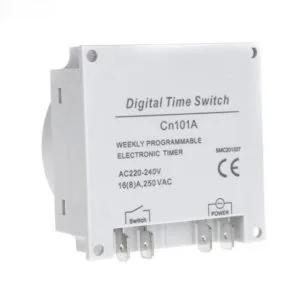 - Công tắc hẹn giờ điện tử CN101A có thể hẹn giờ bật tắt chính xác đến từng phút, có thể lưu tới 17 lần bật/tắt trong 1 ngày, có 3 chế độ ON/OFF/AUTO đáp ứng nhu cầu cực kỳ đa dạng trong các ứng dụng khó về bài toán thời gian.